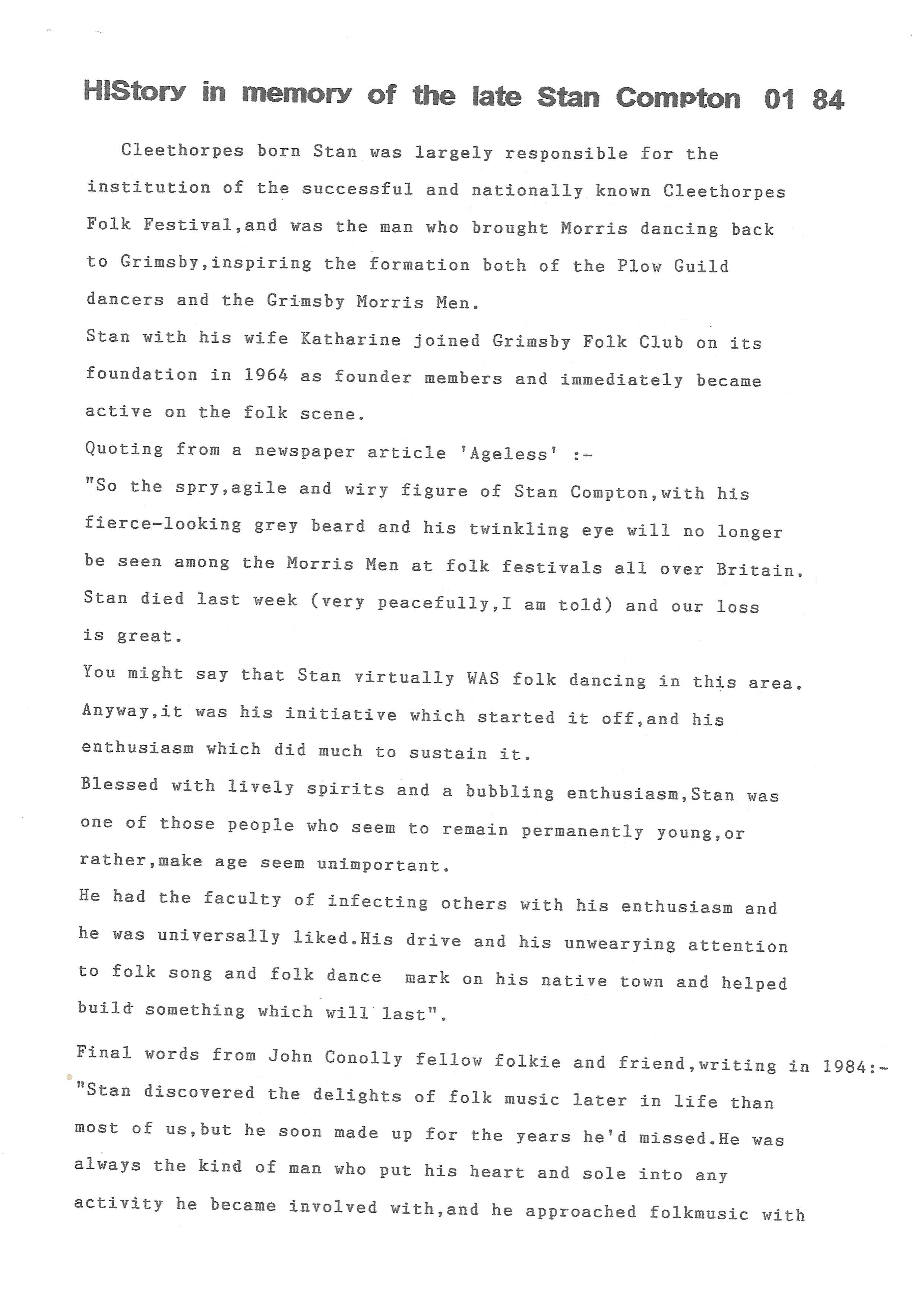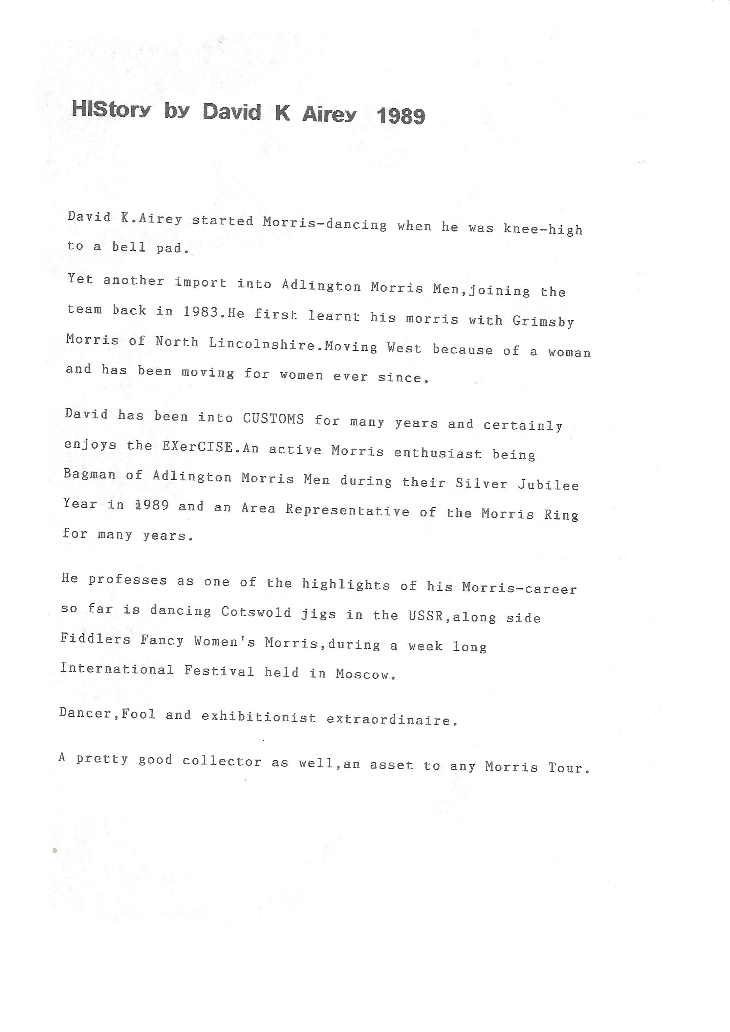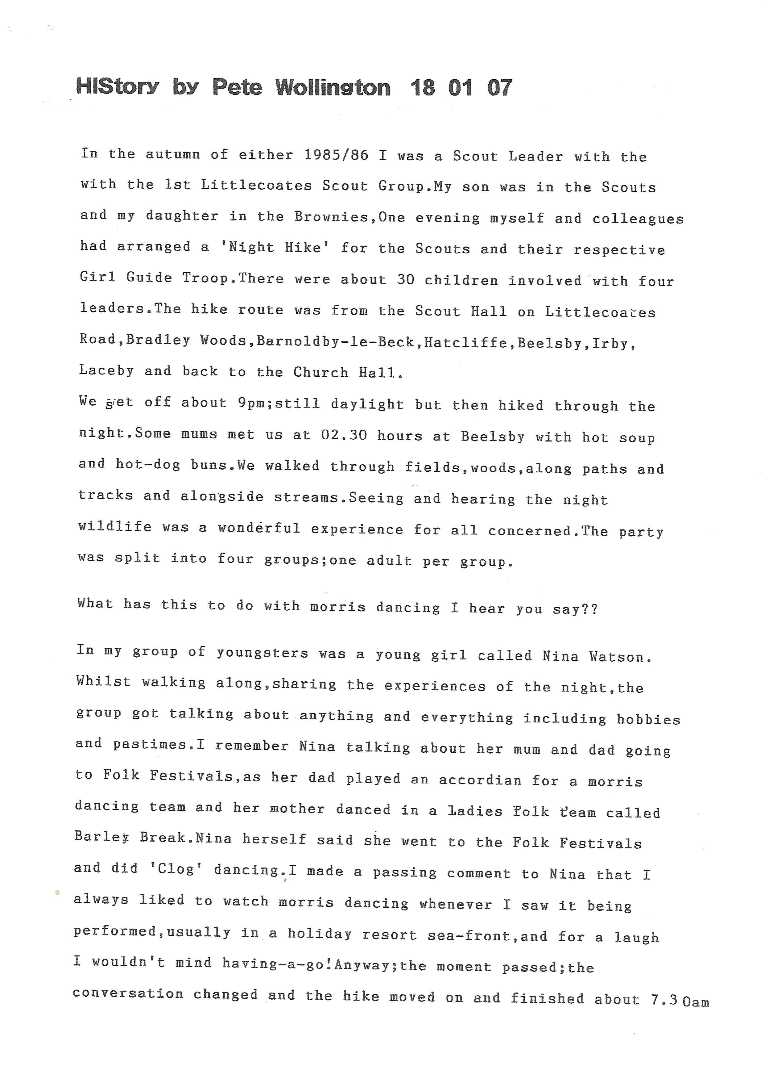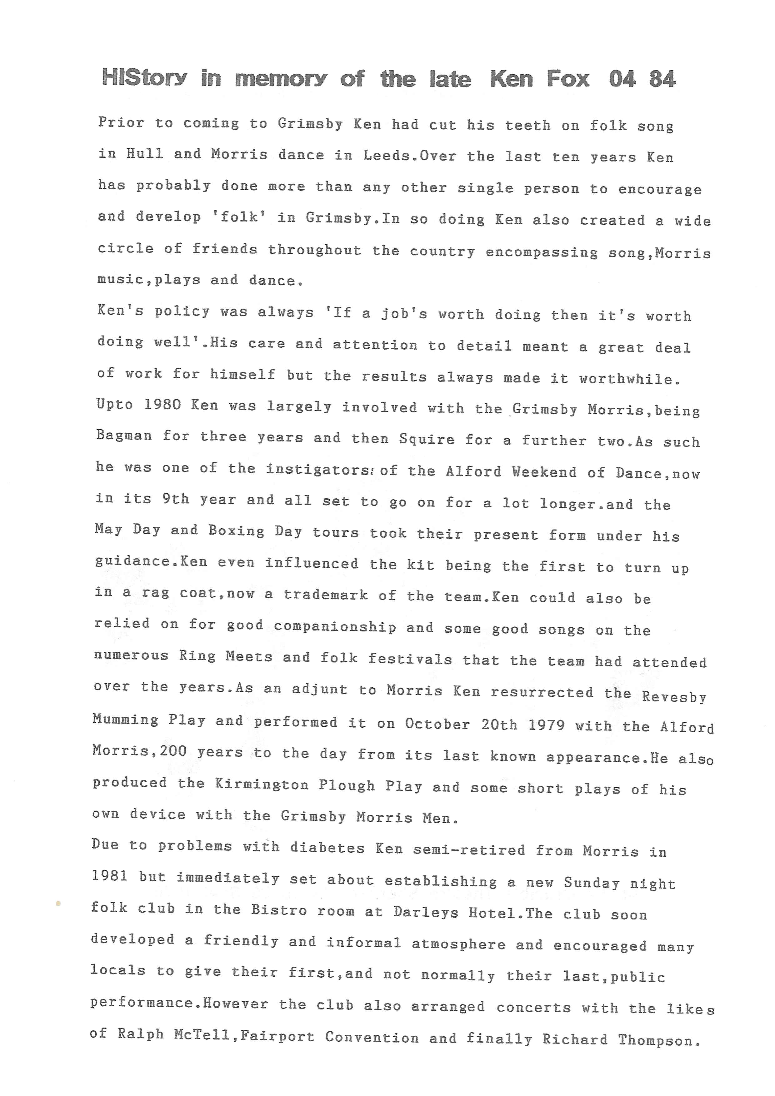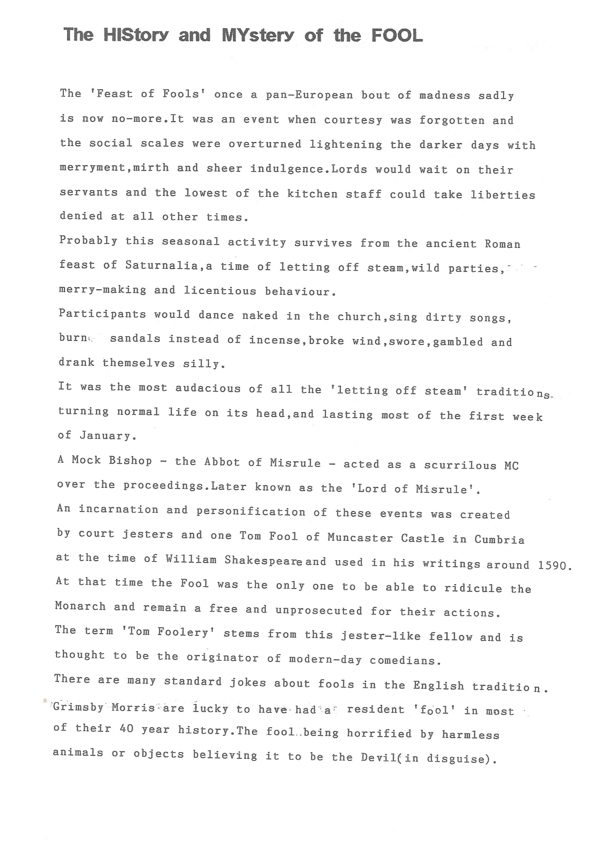 The Histories are a series of books collated by Ian Horsley documenting the history of Grimsby Morris and the dancers and musicians of the side. This first book was assembled from various documents in the archive for the side's 40th anniversary in 2007.