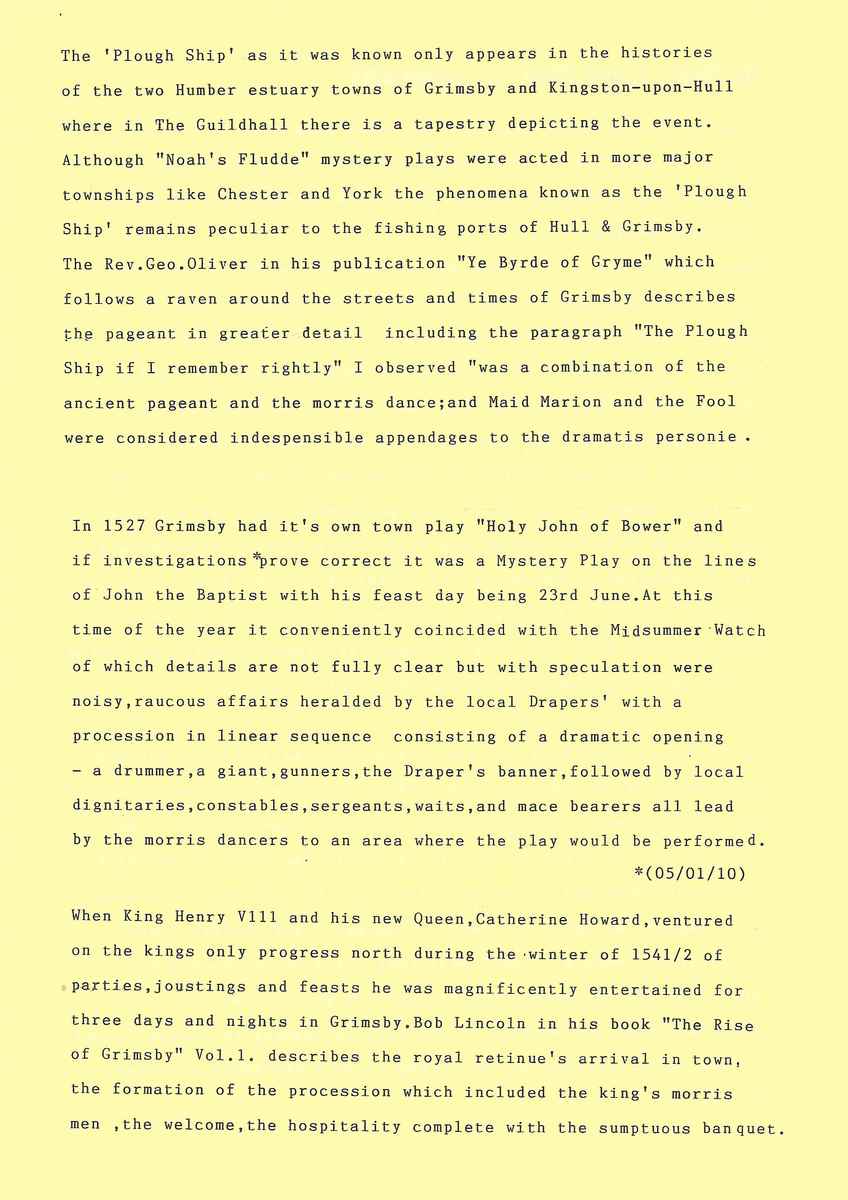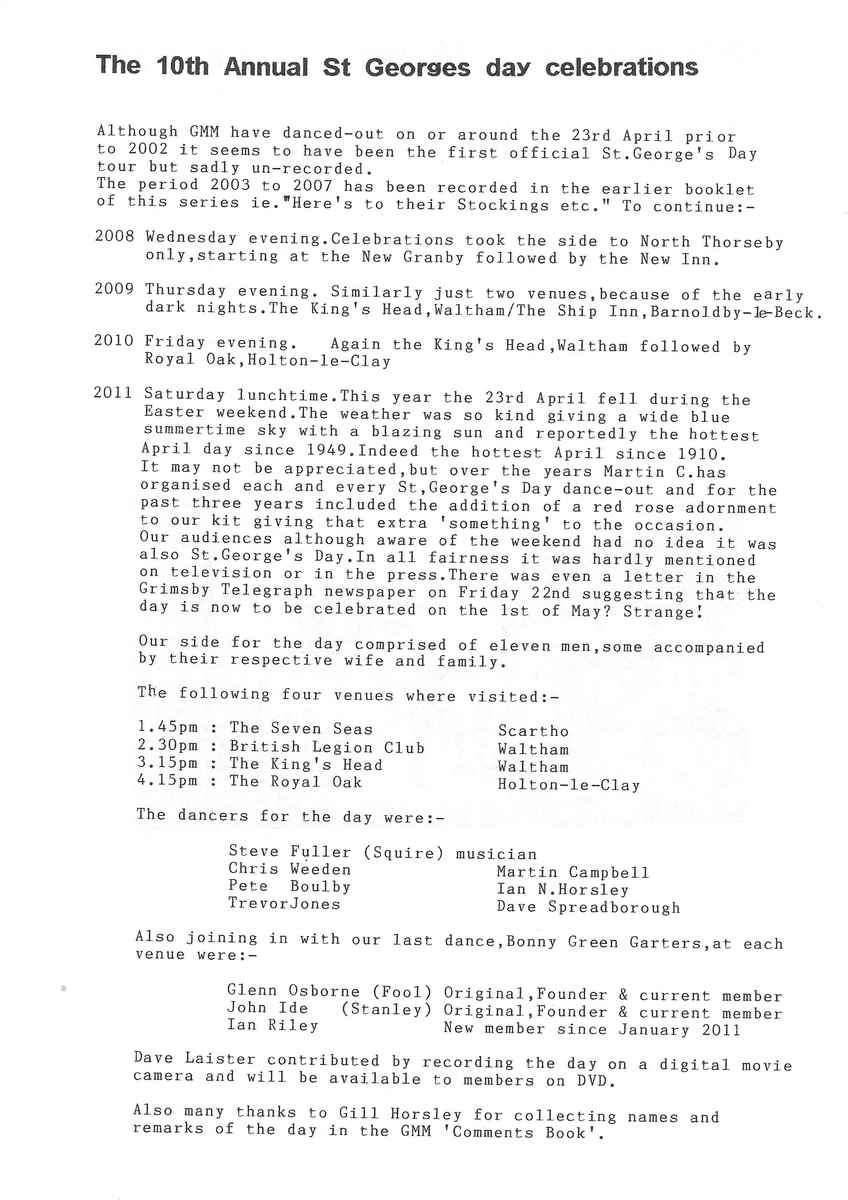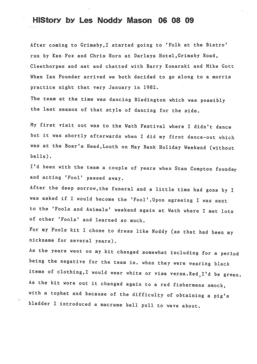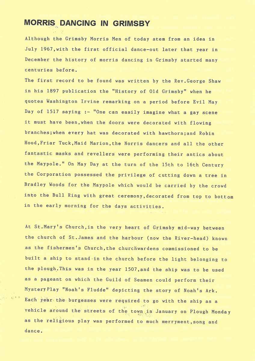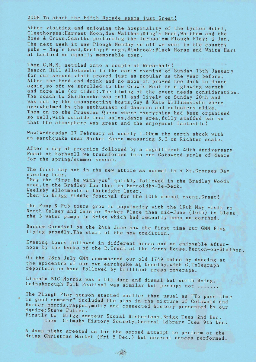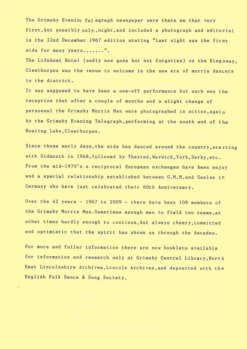 The Histories are a series of books collated by Ian Horsley documenting the history of Grimsby Morris and the dancers and musicians of the side. This is the fourth book.