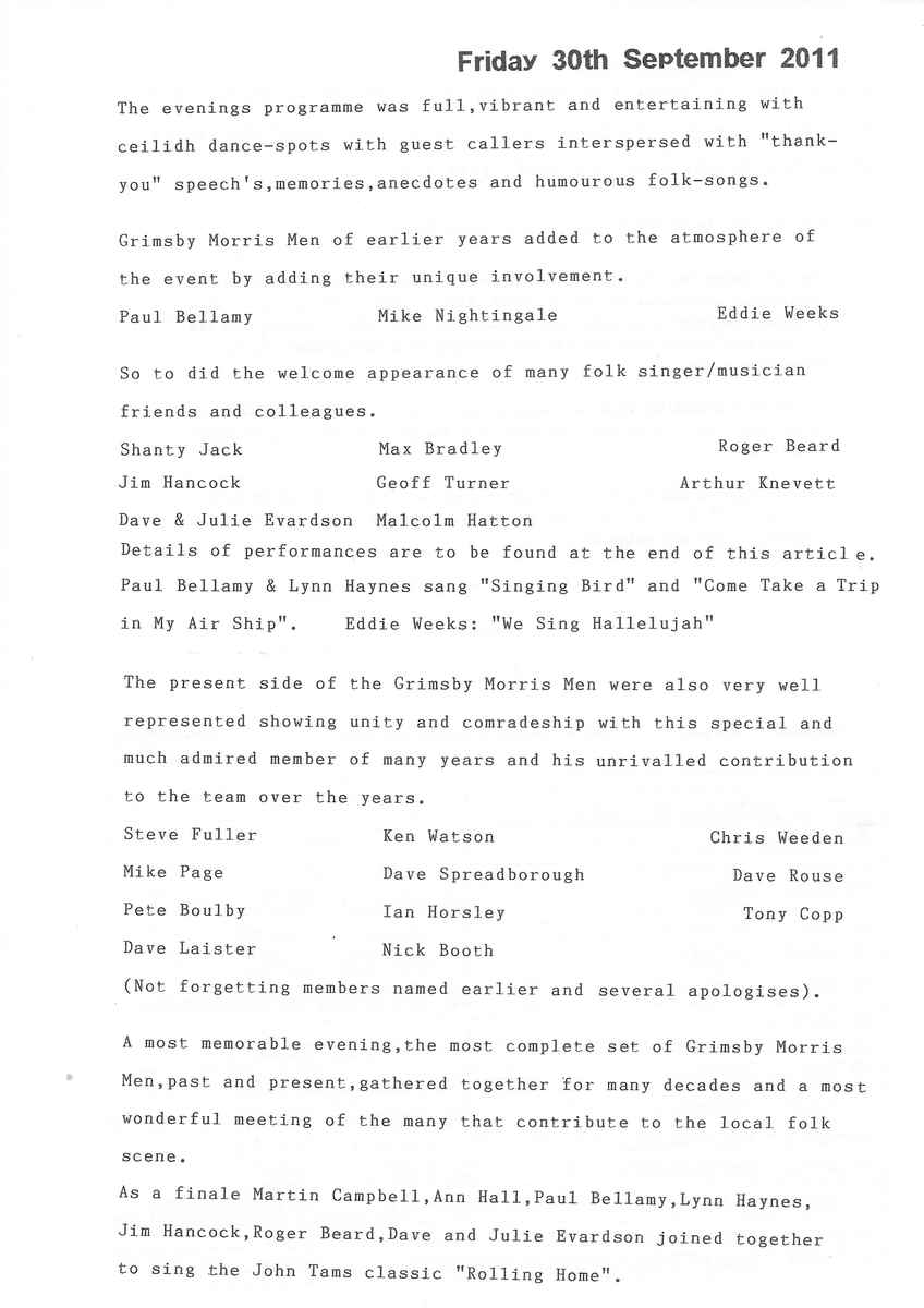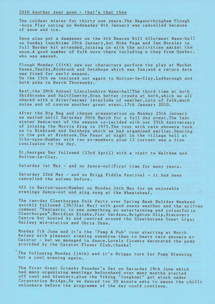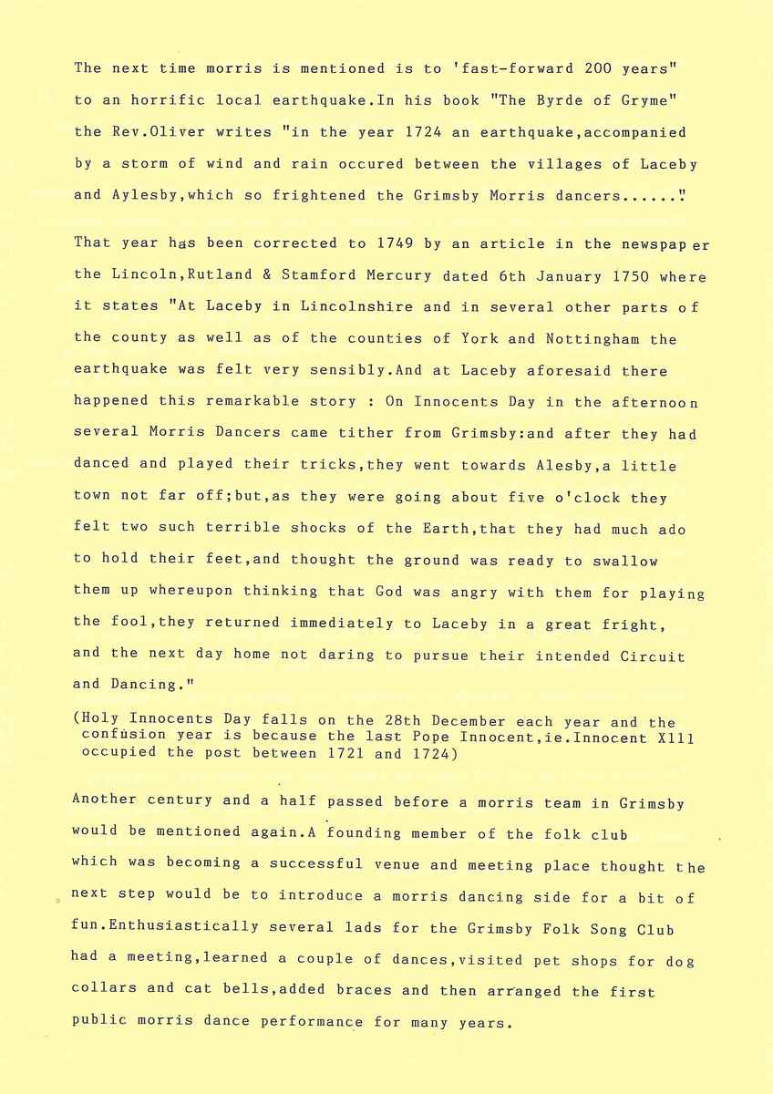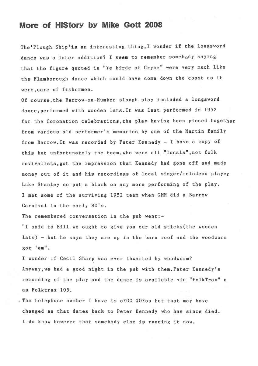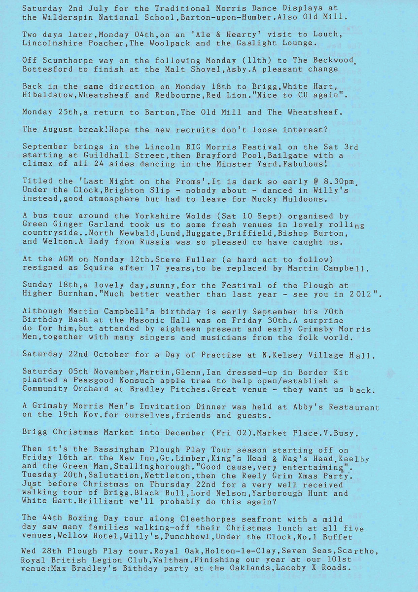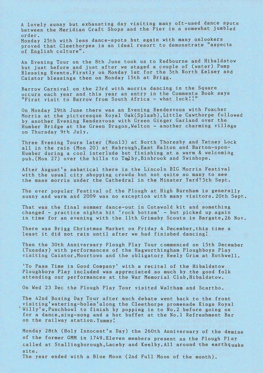 The Histories are a series of books collated by Ian Horsley documenting the history of Grimsby Morris and the dancers and musicians of the side. This is the fourth book.