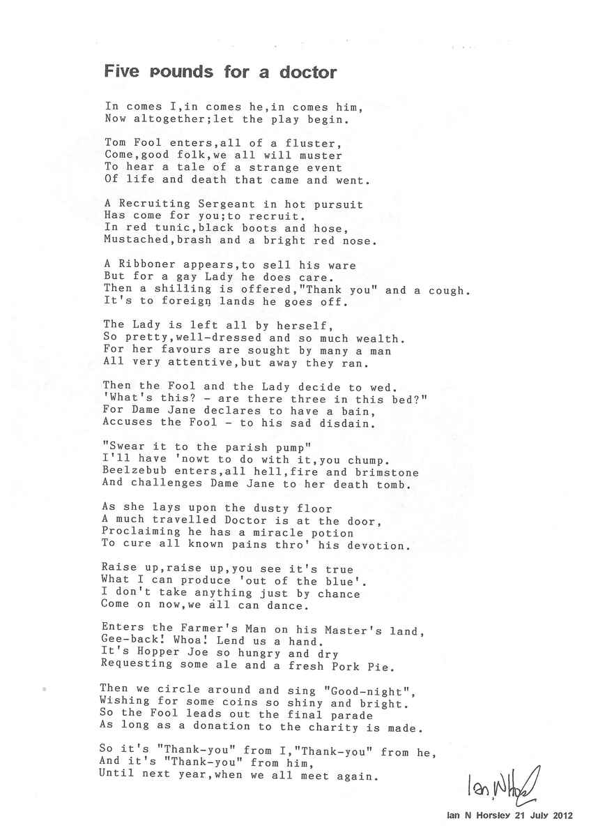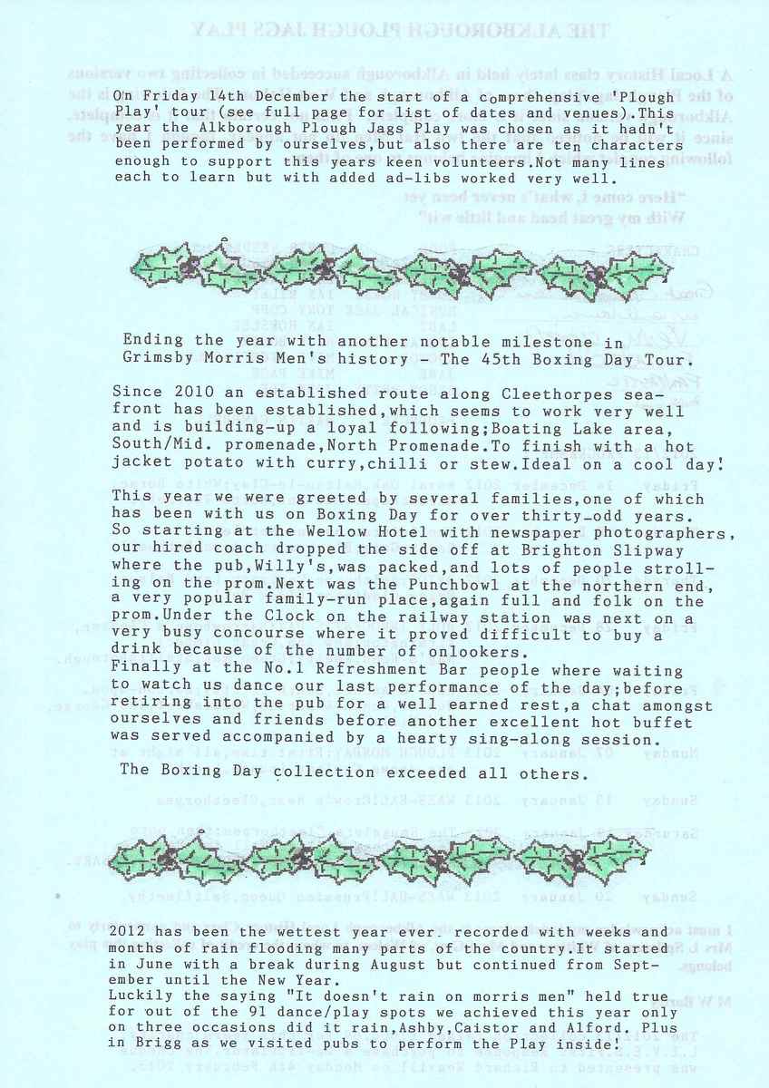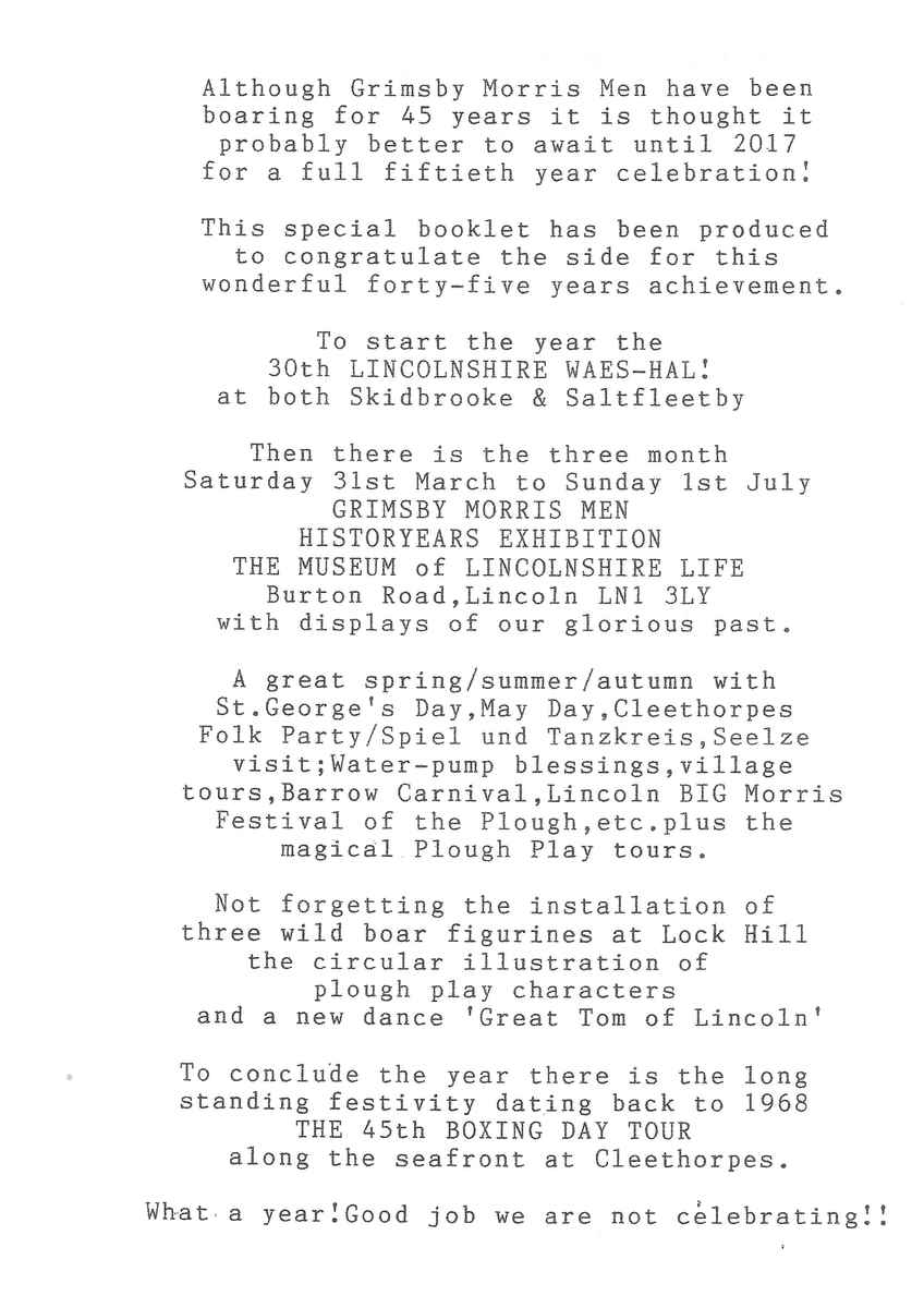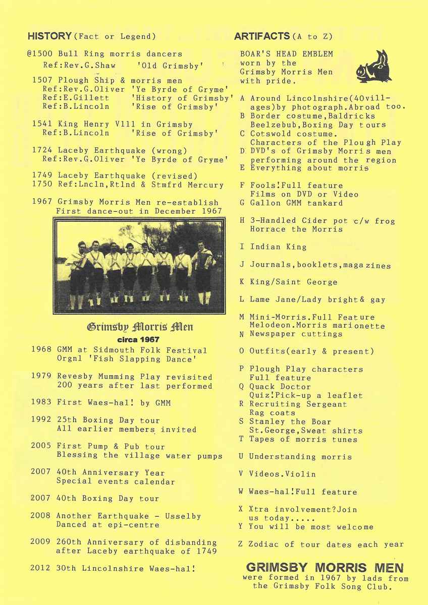 The Histories are a series of books collated by Ian Horsley documenting the history of Grimsby Morris and the dancers and musicians of the side. This is the fifth book.